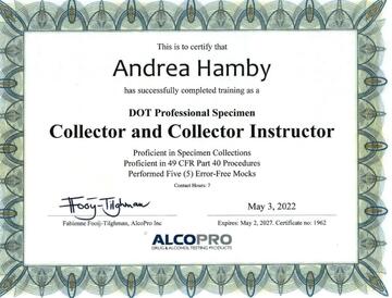 - DOT Certified Specimen Collector/Instructor